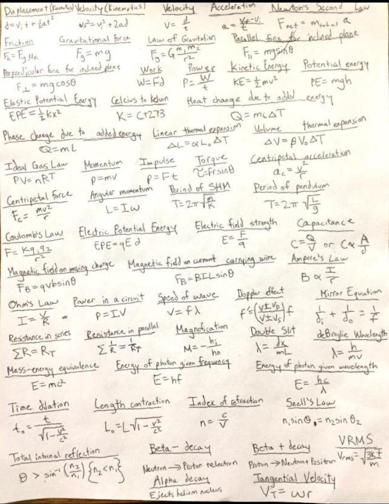 - This cheat sheet is for all levels of Physics (but with AP Physics 1 in mind)