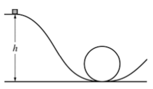 A small block slides without friction along a track toward a circular loop. The block has more than enough speed to remain firmly in contact with the track as it goes around the loop. The magnitude of the block’s acceleration at the top of the loop is