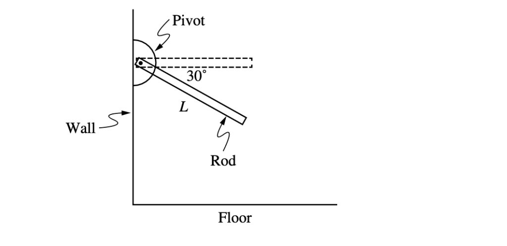 A uniform rod of mass \( M_0 \) and length \( L \) is free to rotate about a pivot at its left end and is released from rest when the rod is \( 30^{\circ} \) below the horizontal, as shown in the figure. With respect to the pivot, the rod has rotational inertia \( I_0 = \dfrac{1}{3} M_0 L^2 \). Which of the following expressions correctly represents the magnitude of the net torque exerted on the rod about the pivot at the moment the rod is released?