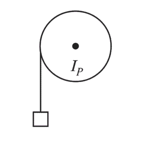 A light string is attached to a massive pulley of known rotational inertia \( I_P \), as shown in the figure. A student must determine the relationship between the torque exerted on the pulley and the change in the pulley’s angular velocity when the torque is applied for \( 2.0 \) \( \text{s} \). In addition to a stopwatch to measure the time interval, what two measurements could the student make in order to determine the relationship? Select two answers.