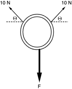 A ring is pulled on by three forces. If the ring is not moving, how big is the force [katex]F[/katex]?